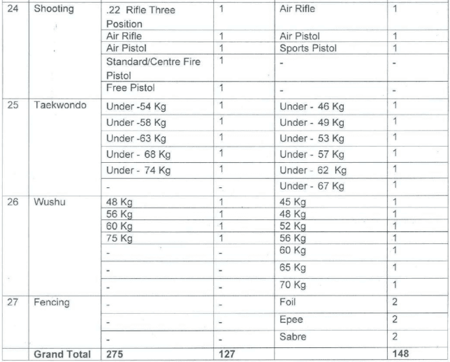 क्रीडा प्रकार: एकूण 29 क्रीडा प्रकार आहेत.