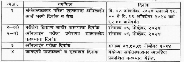 या भरतीसाठी ऑनलाईन स्वरूपात अर्ज करण्याची शेवटची तारीख ही 19 ऑक्टोबर 2024 आहे.