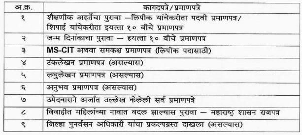 1. लिपिक (Clerk): (i) कोणत्याही शाखेतील पदवी  (ii) MS-CIT किंवा समतुल्य