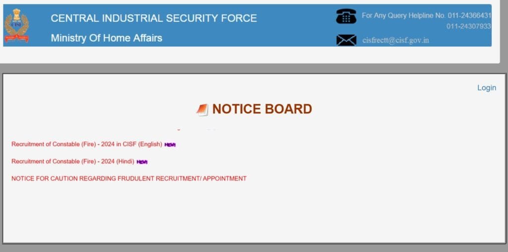 - CISF अधिकृत संकेतस्थळावर लॉगिन करा: