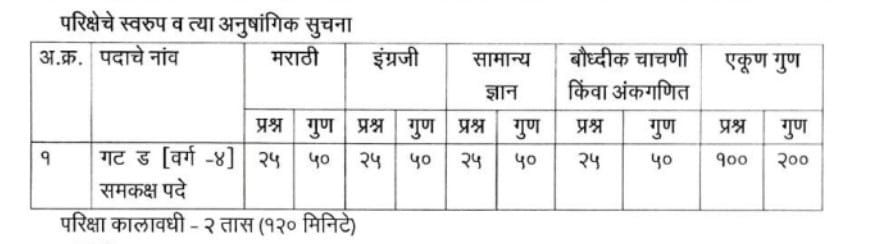 - गट ड (वर्ग 4) पदांसाठी कोणतीही मौखिक परीक्षा (मुलाखत) होणार नाही.