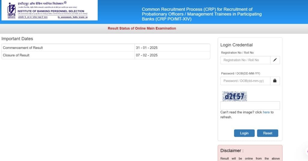 IBPS Result 2024 पाहण्यासाठी अधिकृत वेबसाइट www.ibps.in येथे लॉगिन करा आणि “CRP PO/MT-XIV Main Result” लिंकवर क्लिक करा.