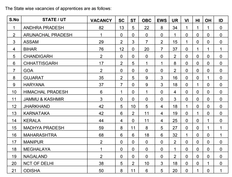 भरतीसाठी एकूण 1500 जागा सोडण्यात आल्या आहेत, या सर्व जागा अप्रेंटिस पदांसाठी असणार आहेत.कमीत कमी पदवी पास या भरती साठी अर्ज करू शकतात.