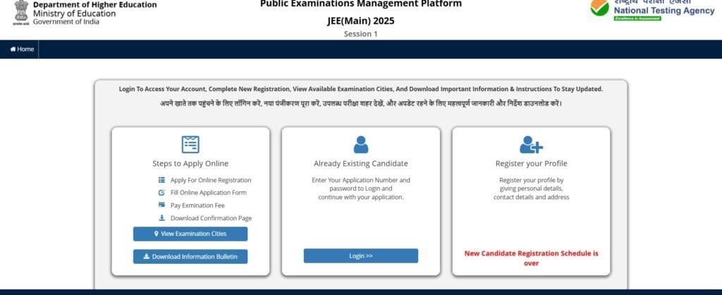 31 जानेवारी 2025 – 24 फेब्रुवारी 2025 | JEE Main 2025 सत्र 2 साठी नोंदणी प्रक्रिया सुरू |
