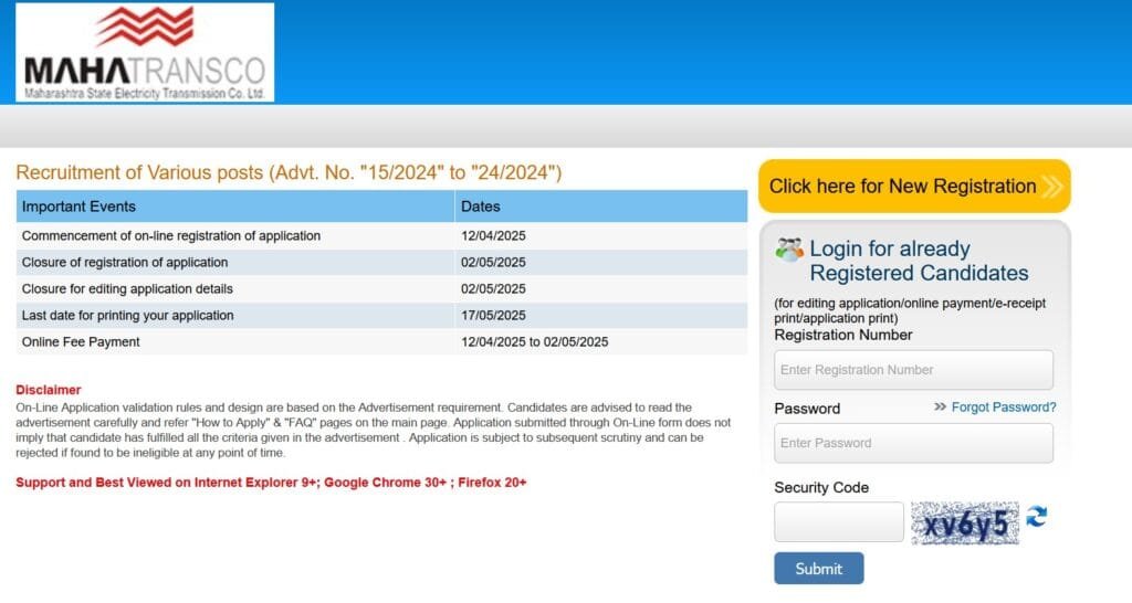 MahaTransco Recruitment 2025: Important Links – महत्त्वाच्या लिंक्स
