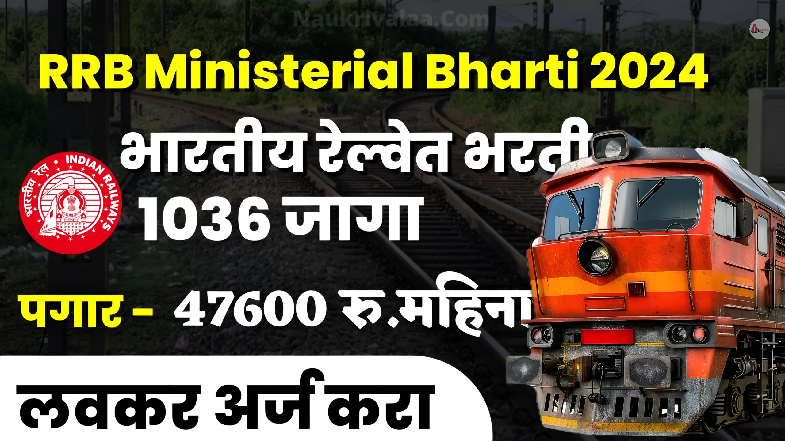 RRB Ministerial Bharti 2024:भारतीय रेल्वे मिनिस्ट्रियल भरती 2024. भारतीय रेल्वेने 2024 मध्ये मिनिस्ट्रियल आणि आयसोलेटेड श्रेणीतील विविध पदांसाठी भरती प्रक्रिया सुरू केली आहे. या भरतीत एकूण 1036 पदांसाठी अर्ज मागवले जात आहेत. या भरतीत स्टेनोग्राफर, टीचर, लॉ असिस्टंट, कुक, आणि इतर महत्त्वाच्या पदांचा समावेश आहे. सरकारी नोकरीच्या शोधात असलेल्या उमेदवारांसाठी ही एक मोठी संधी आहे.