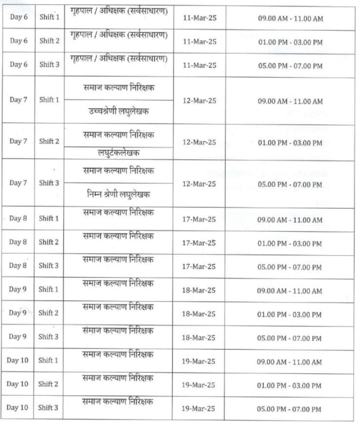 या भरती परीक्षेत वरिष्ठ समाज कल्याण निरीक्षक, गृहपाल (महिला व सर्वसाधारण), समाज कल्याण निरीक्षक, उच्च व निम्न श्रेणी लघुलेखक आणि लघुटंकलेखक या पदांसाठी परीक्षा होणार आहे.