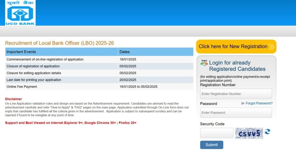 - अधिकृत वेबसाइट https://ucobank.com ला भेट द्या आणि Career Page > Recruitment Opportunities > CLICK HERE TO APPLY ONLINE FOR LOCAL BANK OFFICER (LBO) 2025-26 या लिंकवर क्लिक करा.