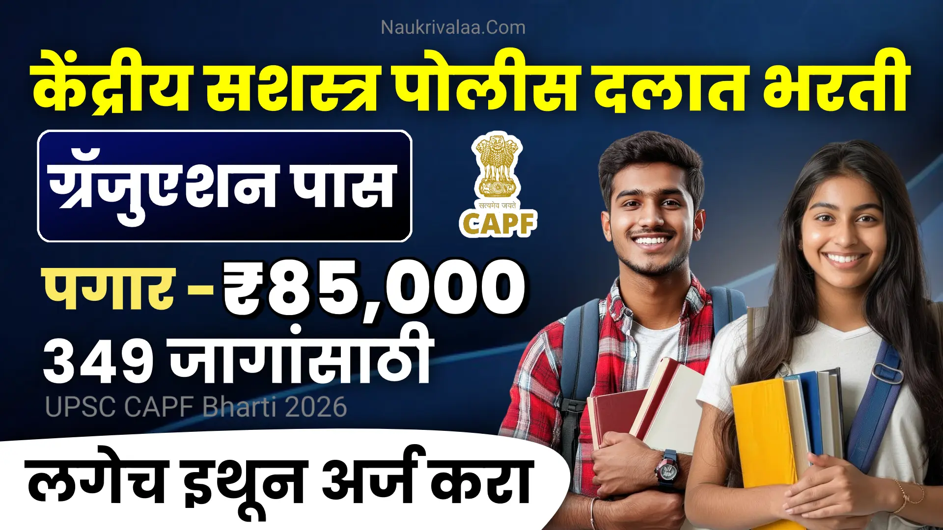 UPSC CAPF Bharti 2026 ही देशसेवेची आणि अधिकारी पदावर काम करण्याची सुवर्णसंधी आहे. 349 जागांसाठी Assistant Commandant पदांची भरती ही केंद्र सरकारची प्रतिष्ठित नोकरी आहे. आकर्षक वेतन, उच्च दर्जाचे प्रशिक्षण, देशभर पोस्टिंग आणि अधिकारी दर्जा ही या भरतीची प्रमुख वैशिष्ट्ये आहेत.